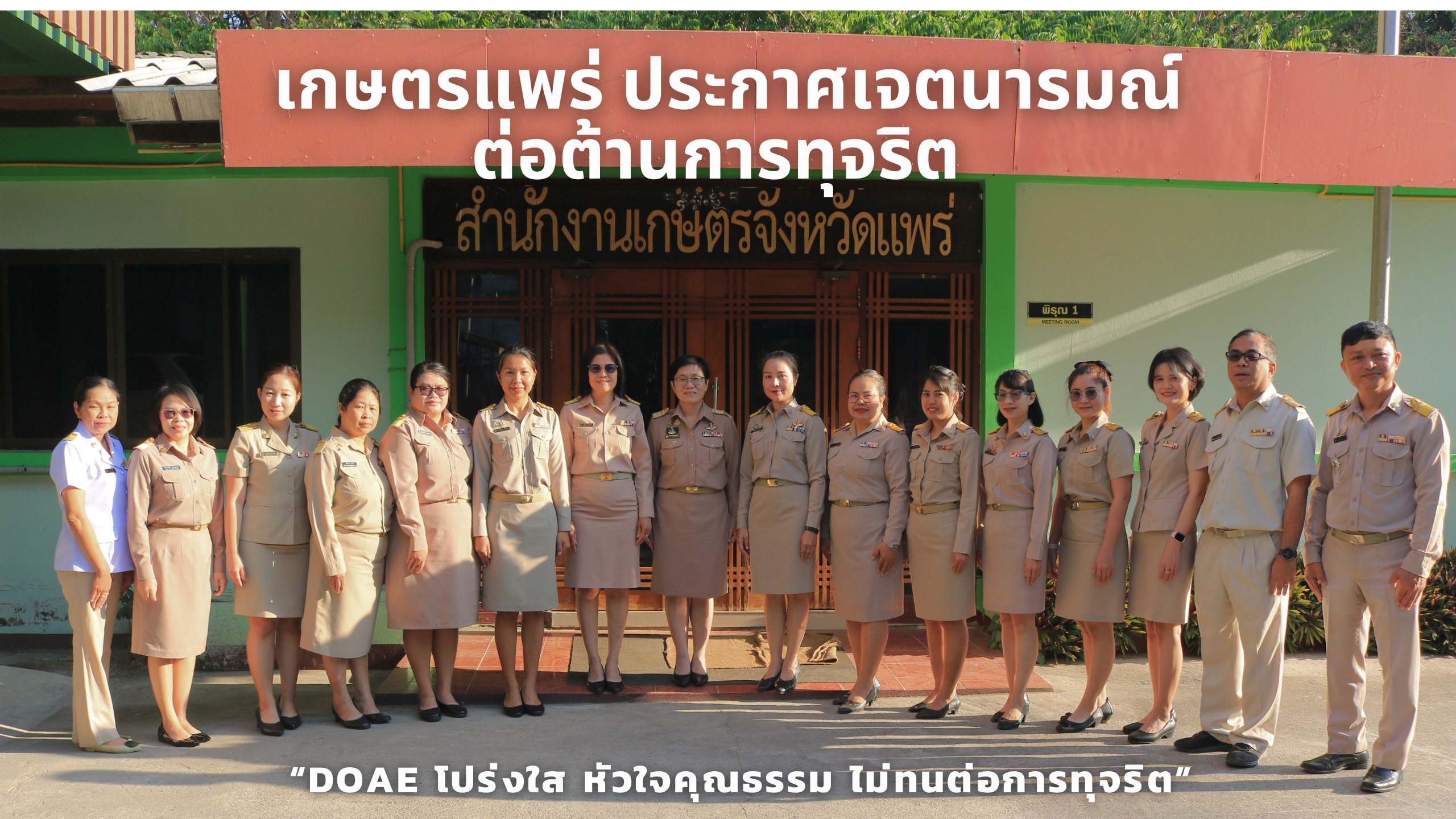 เกษตรแพร่ ประกาศเจตนารมณ์ต่อต้านการทุจริต “DOAE โปร่งใส หัวใจคุณธรรม ไม่ทนต่อการทุจริต”