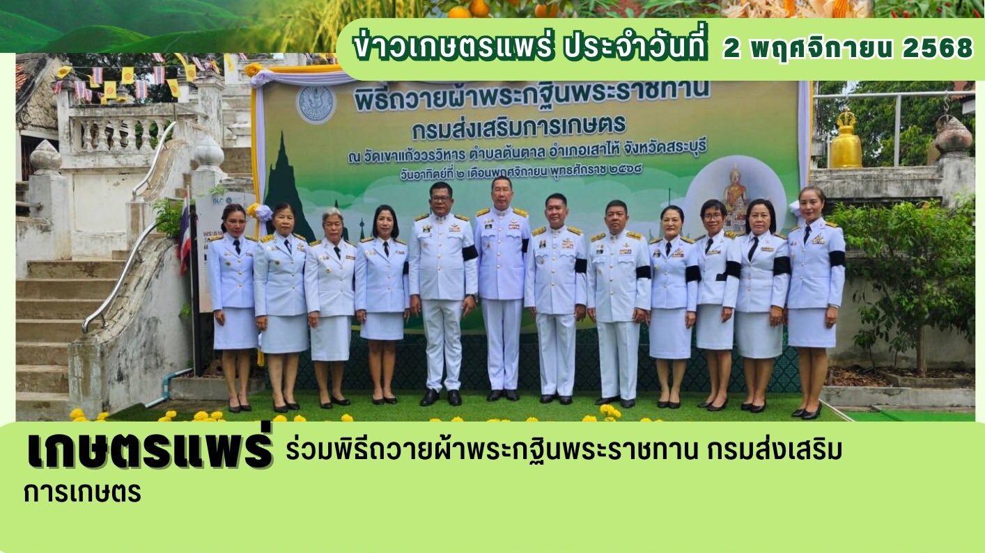 วันที่ 2 พฤศจิกายน 2568 นางสาวอัญชลี ปัญญากวาว เกษตรจังหวัดแพร่ พร้อมด้วยหัวหน้ากลุ่ม หัวหน้าฝ่ายบริหารทั่วไป และเกษตรอำเภอ ร่วมพิธีถวายผ้าพระกฐินพระราชทาน กรมส่งเสริมการเกษตร ณ วัดเขาแก้ววรวิหาร ตำบลต้นตาล อำเภอเสาไห้ จังหวัดสระบุรี โดยมีนายพีรพันธ์ คอทอง อธิบดีกรมส่งเสริมการเกษตร เป็นประธาน